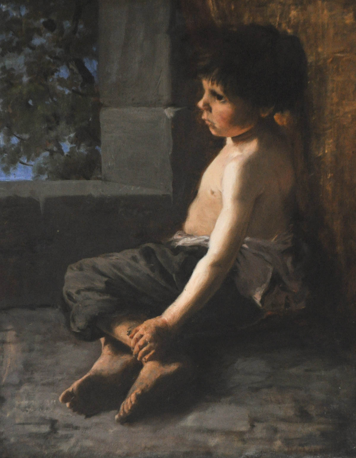 Hans Rabensteiner (Villanders/Villandro 1849 - München/Monaco 1930) Ragazzo in riposo;Olio su tela, 86,5 x 67,5 cm, in cornice