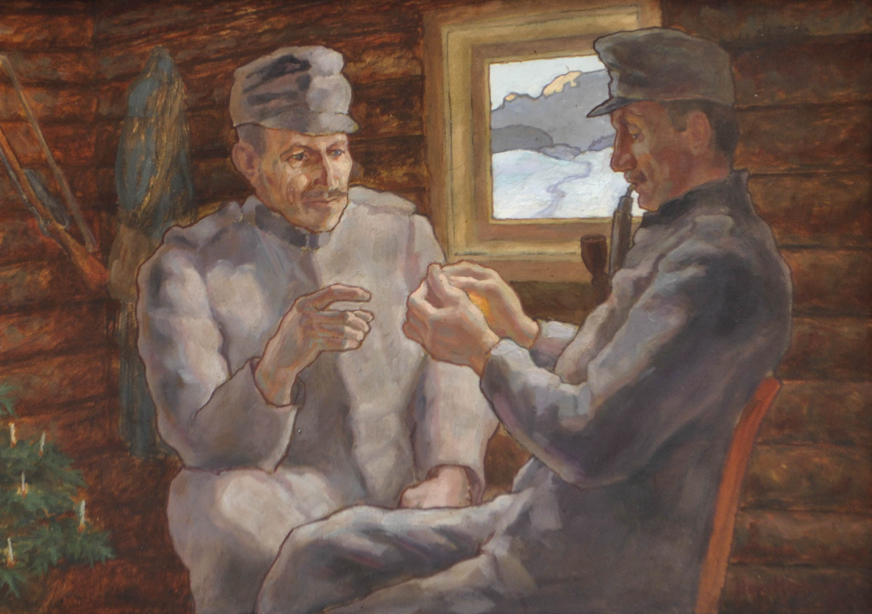 Johannes Hepperger (Innsbruck 1894 - Zirl 1964) k. u. k. Kriegspressequartiers Bozen 1917;Olio su cartone, 45 x 64 cm, in cornice; firma