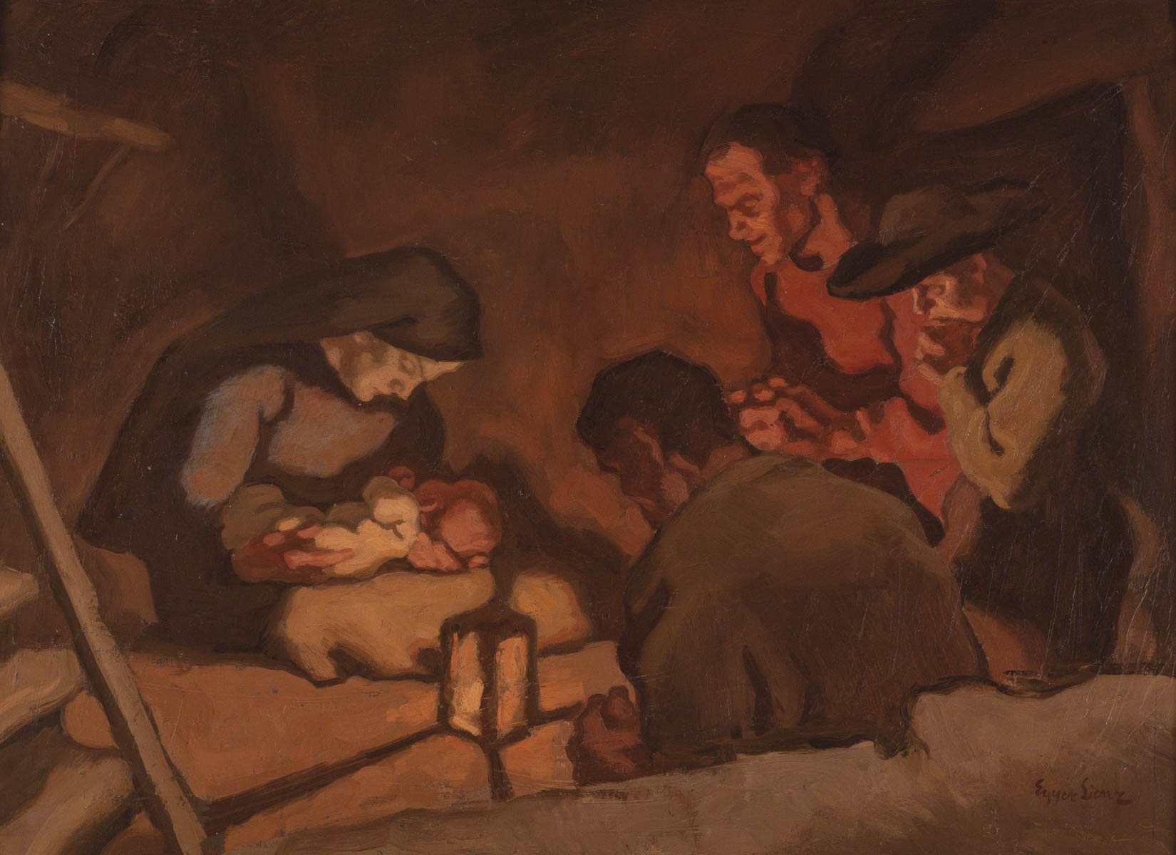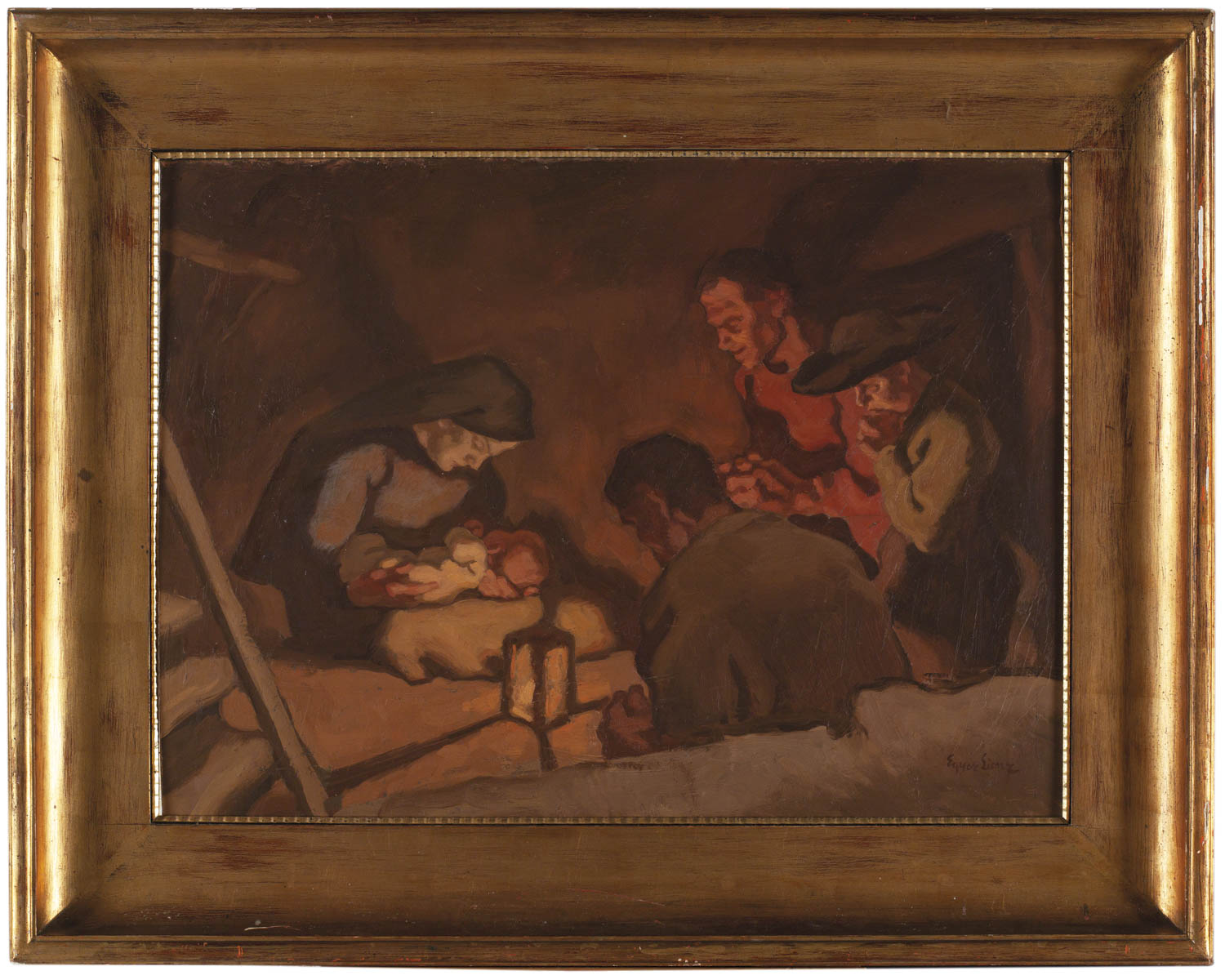 Albin Egger-Lienz (Stribach bei Lienz 1868 - St. Justina bei Bozen 1926) Notte Santa, 1917;Olio su cartone, 69 x 95 cm, cornice originale