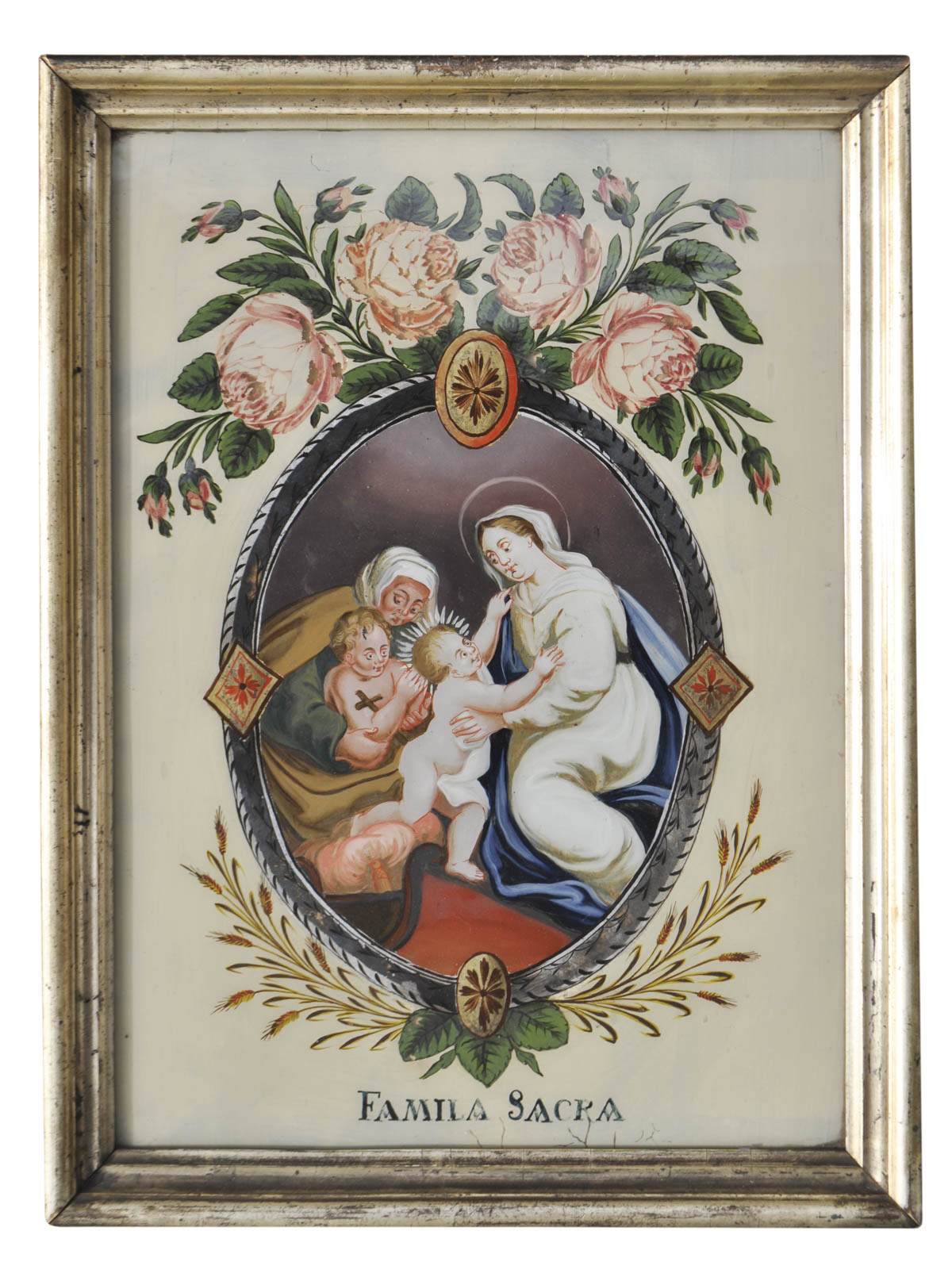 Anonym/Anonimo "Famiglia Sacra", XIX sec.;Pittura dietro vetro, 37,5 x 27 cm, in cornice