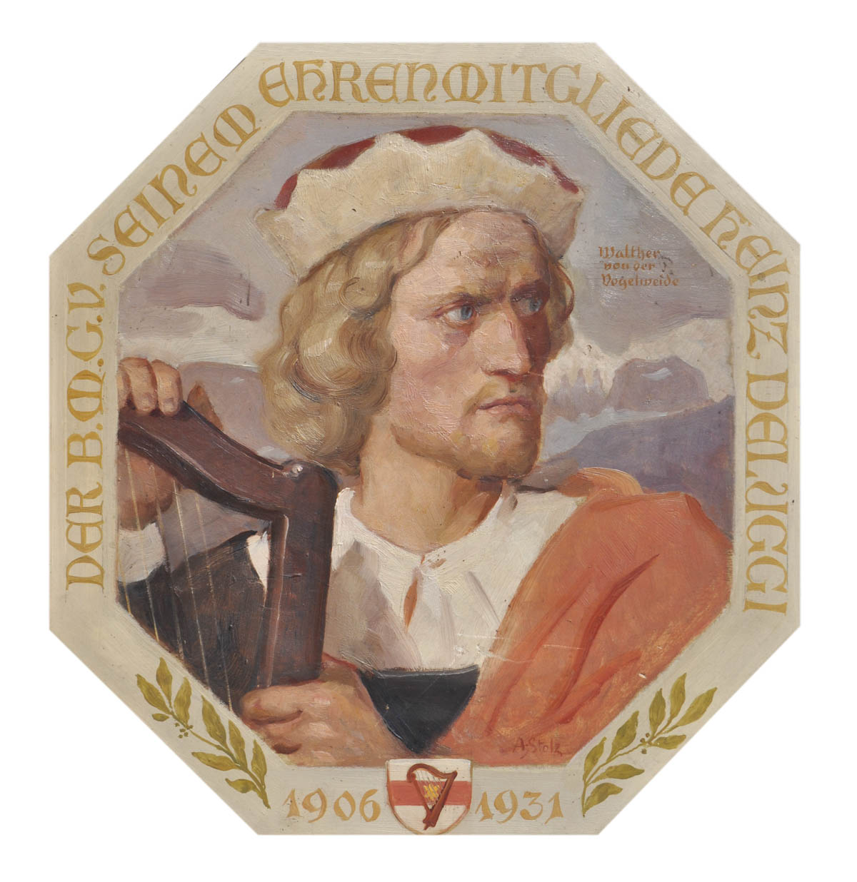 Albert Stolz (Bozen/Bolzano 1875 - 1947) Walther von der Vogelweide, 1931;Olio su tavola, 38 x 36,5 cm, piccoli
