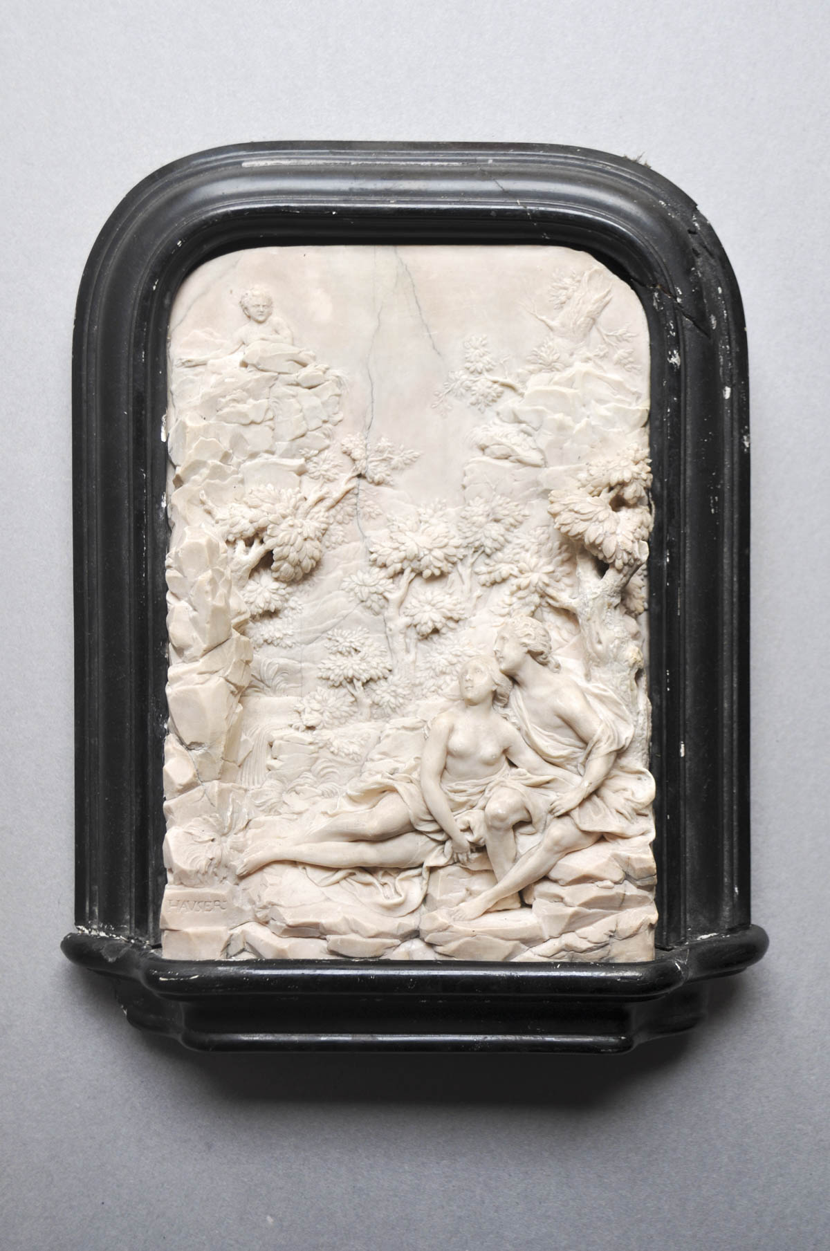 Hauser (Wien, 19. Jh./Vienna, XIX sec.) Coppia in paesaggio idilliaco;Rilievo in alabastro, 22,5 x 15 cm,