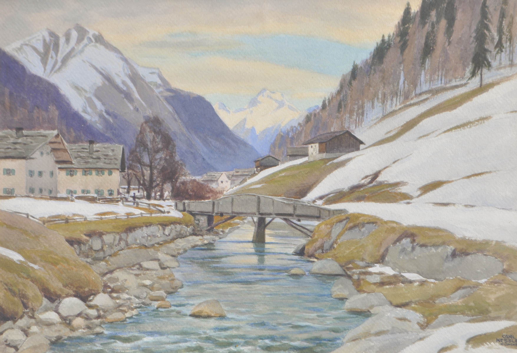Carl Kessler (Coburg 1876 - München/Monaco di Baviera 1968) Steeg nella valle Lechtal;Guazzo, 34 x 49 cm, in cornice