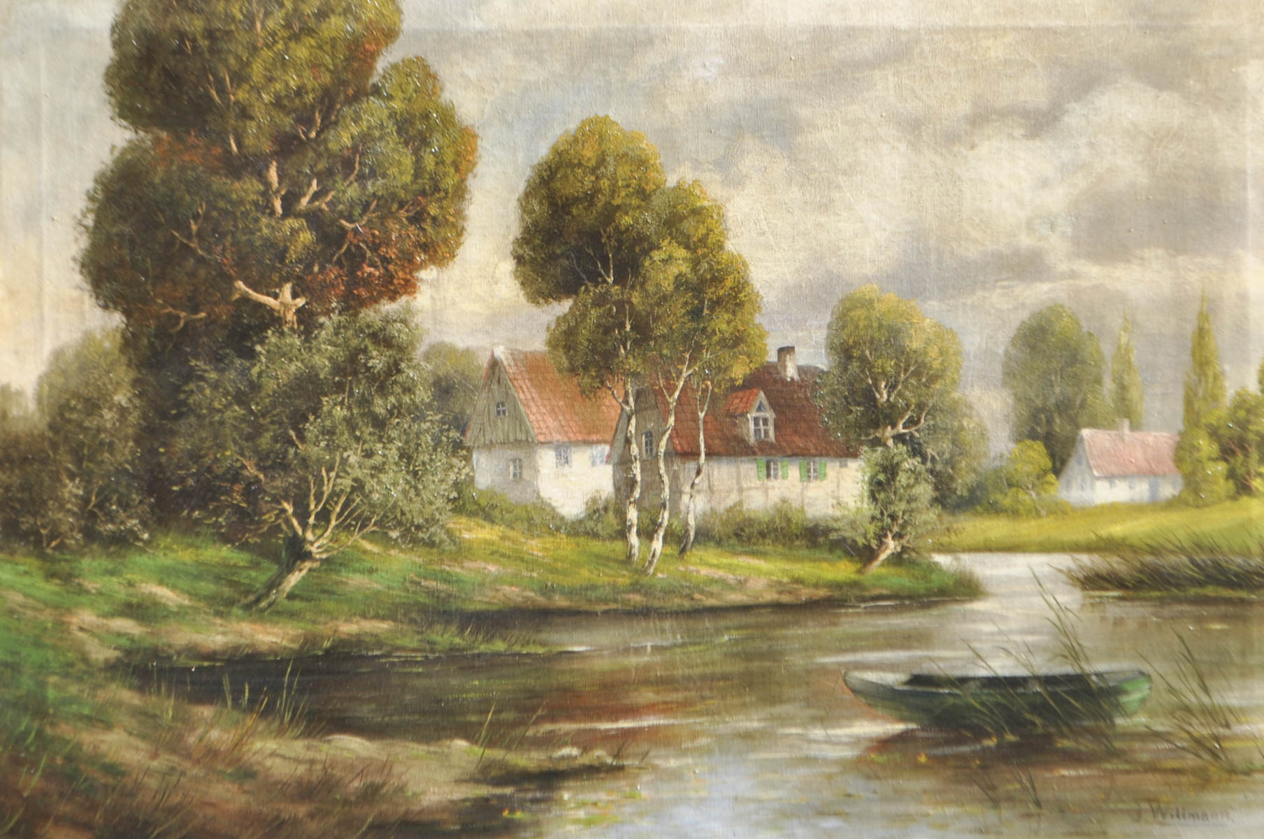 J. Willmann Paesaggio lacustre in Germania;Olio su tela 56,5 x 82,5 cm, in...