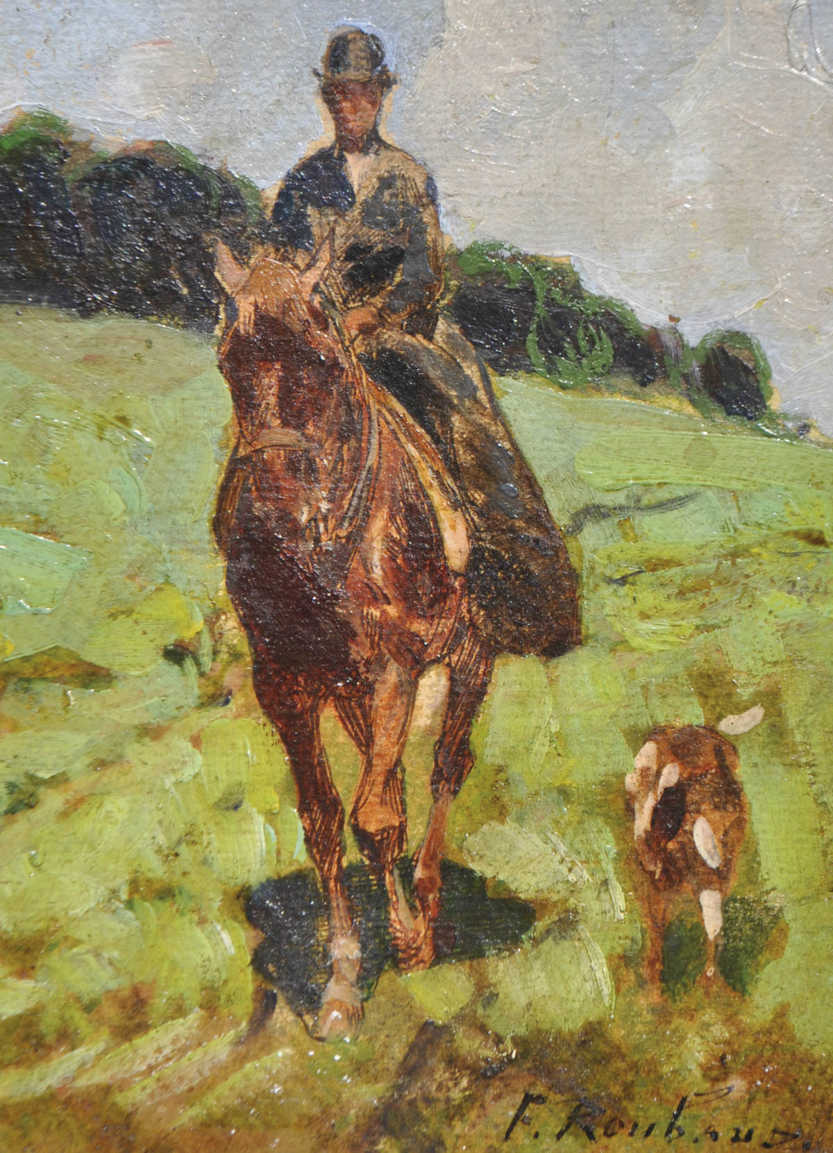 Franz Alekseevic Roubaud zugeschrieben/ attribuito (Odessa 1856 - München/Monaco di Baviera 1928) Cavaliere con cane;Olio e china su cartone, 14,5 x 10,5 cm, in