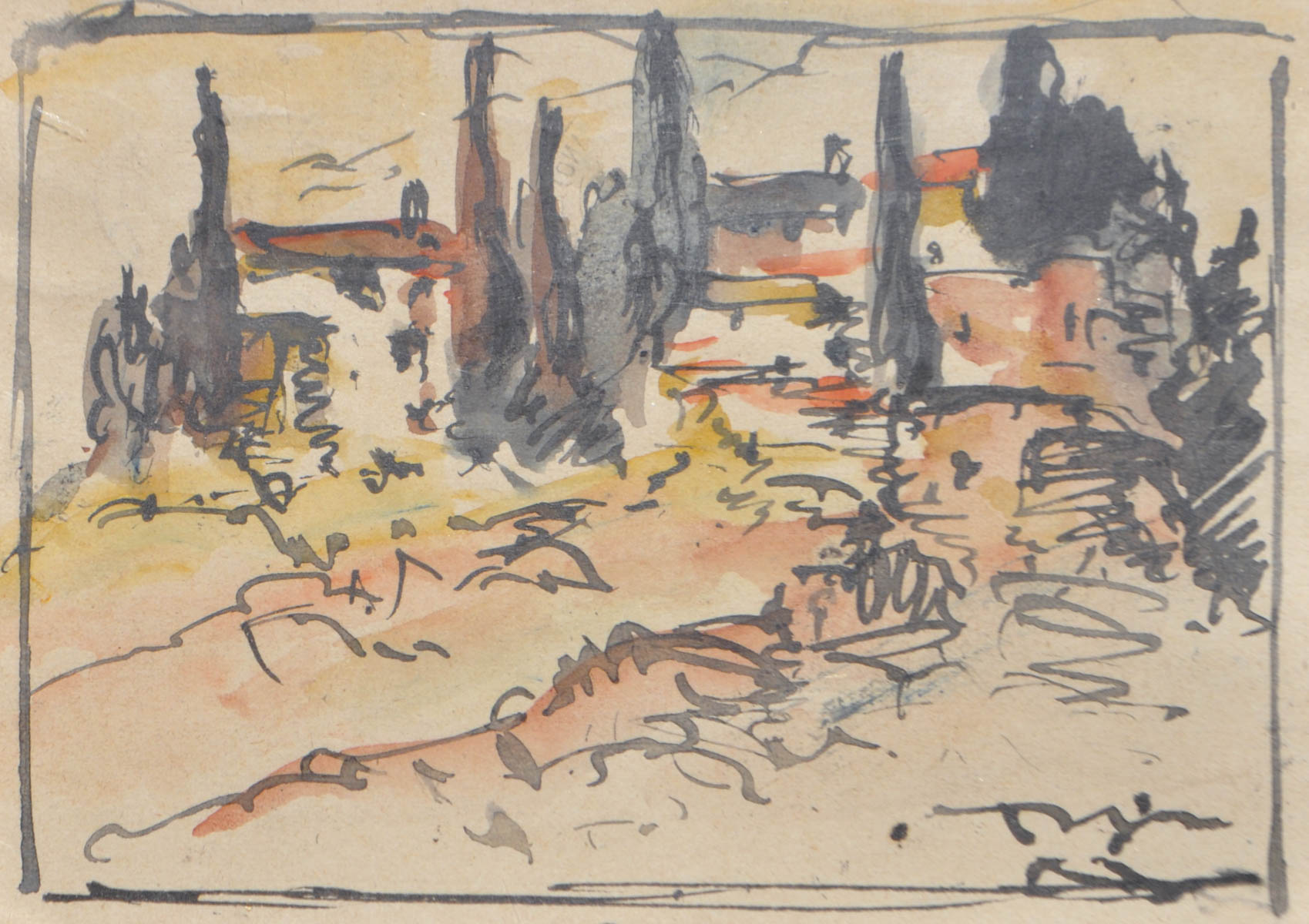 Josef Mahlknecht (Bozen/Bolzano 1886 - Meran/Merano 1953) Fattoria con cipressi;China e acquerello, 10,5 x 14,5 cm