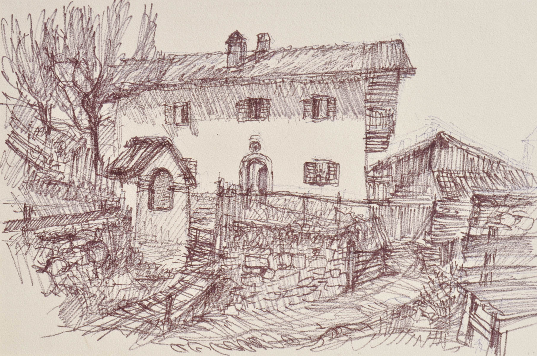Erich Pattis (Tiers/Tires 1902 - Bozen/Bolzano 1996) Tre masi in Alto Adige;3 disegni, pennarello o china, diversi formati