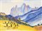 Ernst Schroffenegger (Feldkirch 1905 - Innsbruck 1994) Paesaggio montuoso con chiesa gotica;Acquerello, 33 x 43,5 cm, in cornice