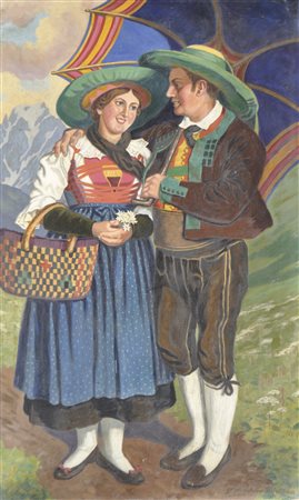 Paula Hornsteiner-Tiefenthaler (Mils bei Hall 1881 - Hall 1942) Costume tradizionale della Val Pusteria;Olio su cartone, 98,5 x 59,5 cm, in cornice