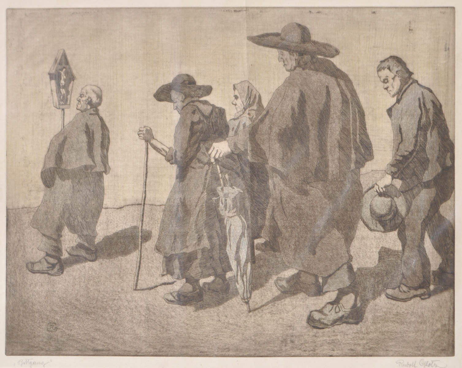 Rudolf Glotz (Wien/Vienna 1879 - Innsbruck 1958) Processione, Alto Adige;Acquaforte colorata, 42,5 x 54,5 cm (lastra)