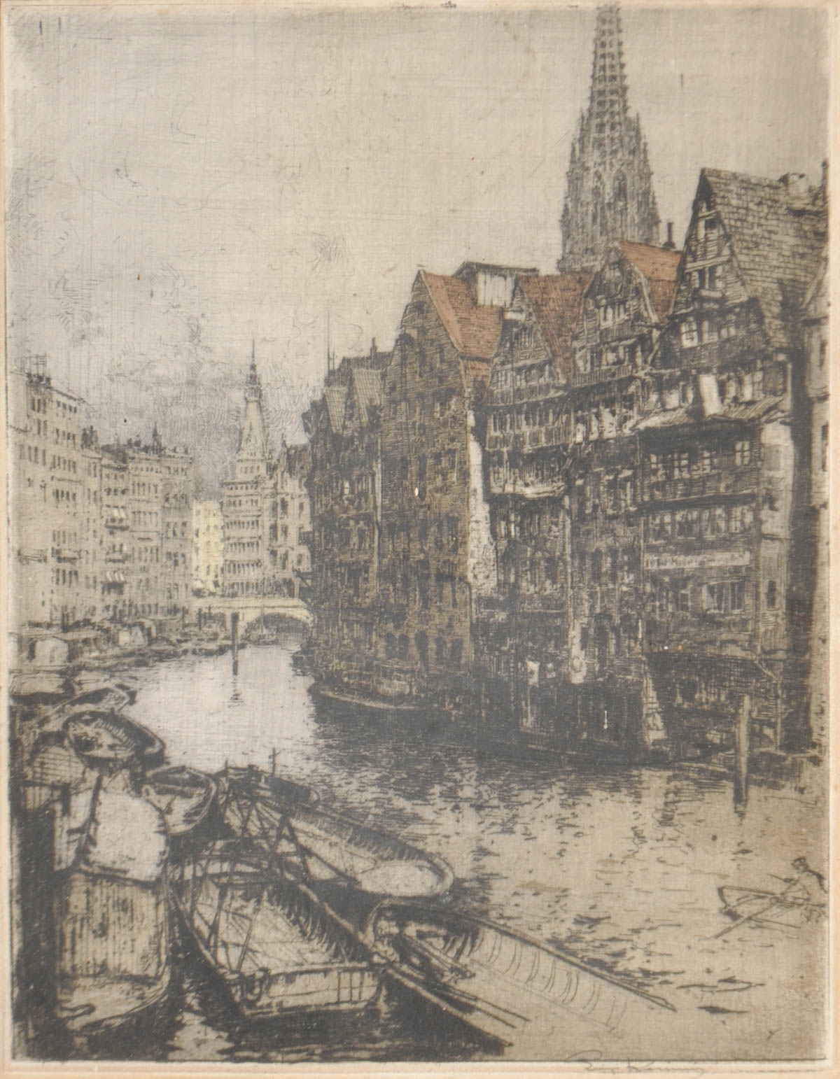 Luigi Kasimir (Pettau/Ptuj, Steiermark/Stiria 1881 - Wien/Vienna 1962) Amburgo;Acquaforte a colori, 28,5 x 24,5 cm (lastra),