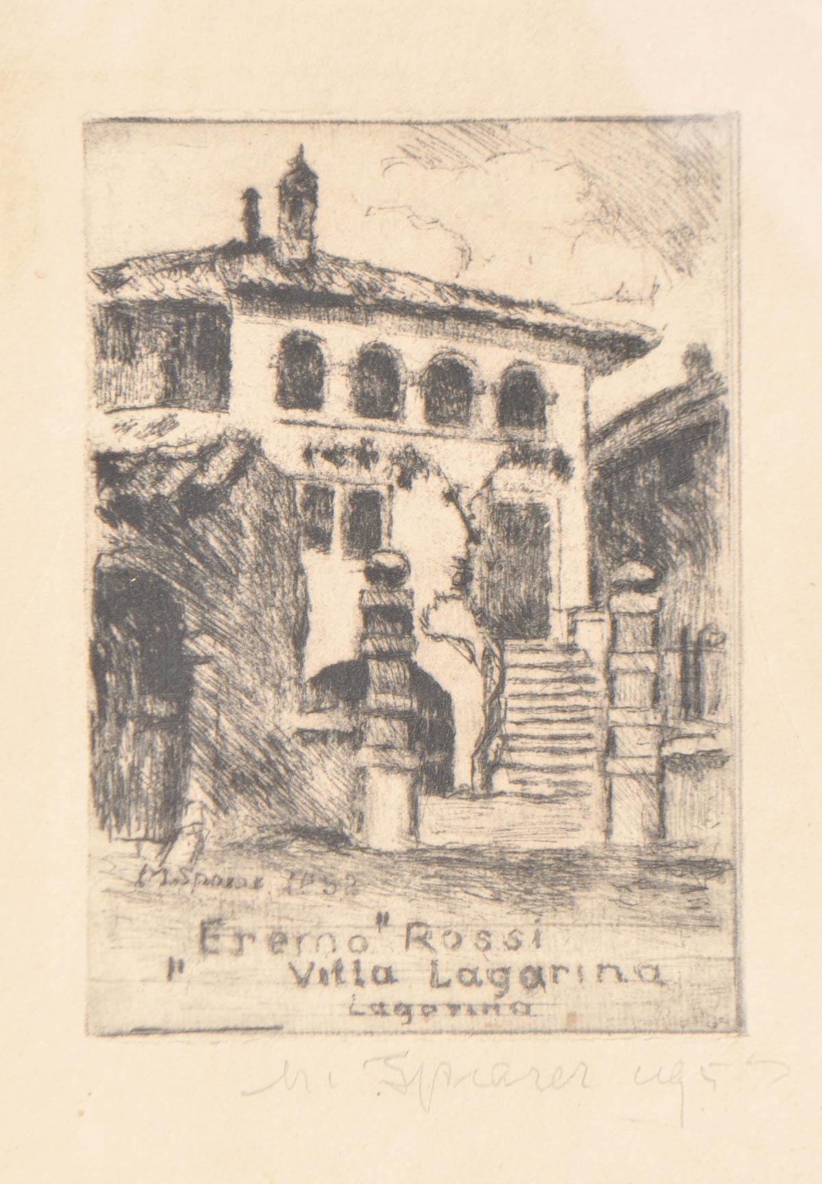 Max Sparer (Söll, Tramin/Termeno 1886 - Bozen/Bolzano 1968) Villa Eremo Rossi Villa Lagarina, 1952;Acquaforte, 13,5 x 9,5 cm (lastra), in