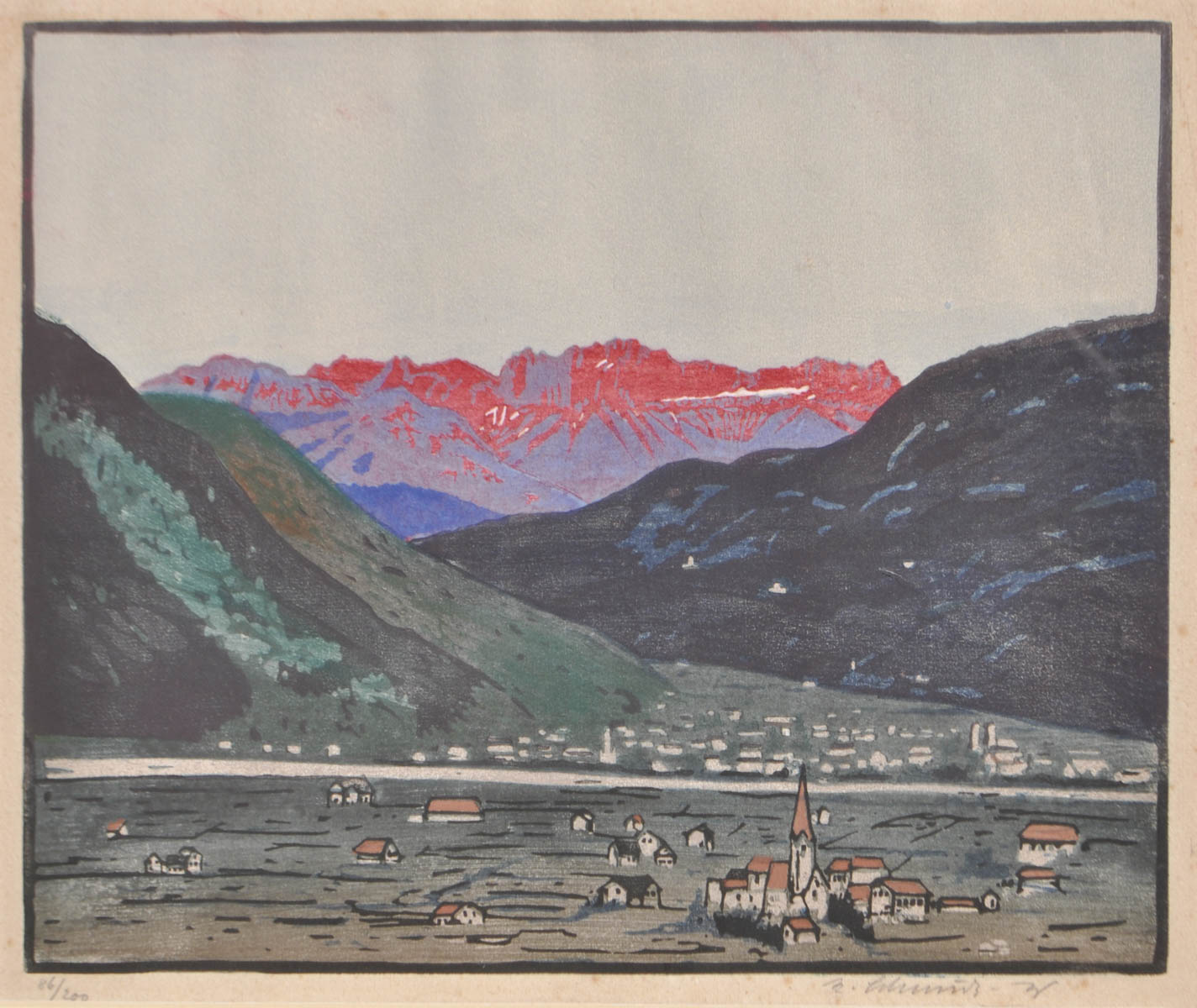 K. Schmidt Bolzano, 1925 ca.;Xilografia a colori, 28,8 x 35 cm, in cornice...
