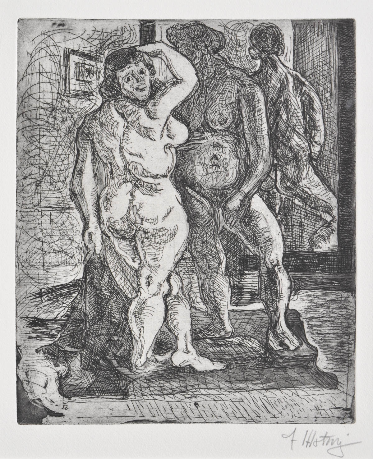 Fritz Martinz (Bruck an der Muhr 1924 - Wien/Vienna 2002) Due nudi in piedi;Acquaforte, 53,8 x 40 cm (foglio)