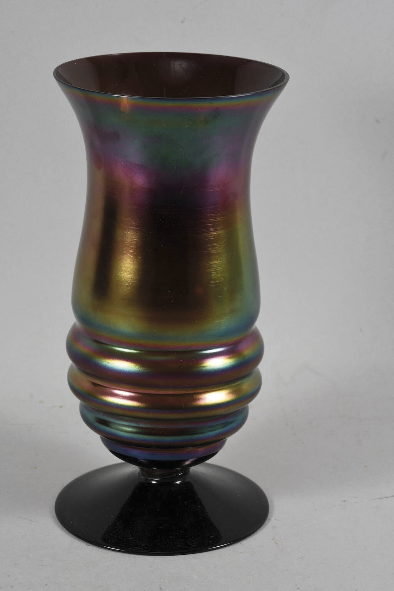 Manufaktur/Manifattura Bohemia (Loetz oder/o Kralik) Vaso Jugendstil, Inizi ’900;in vetro nero iridescente, h. 23 cm