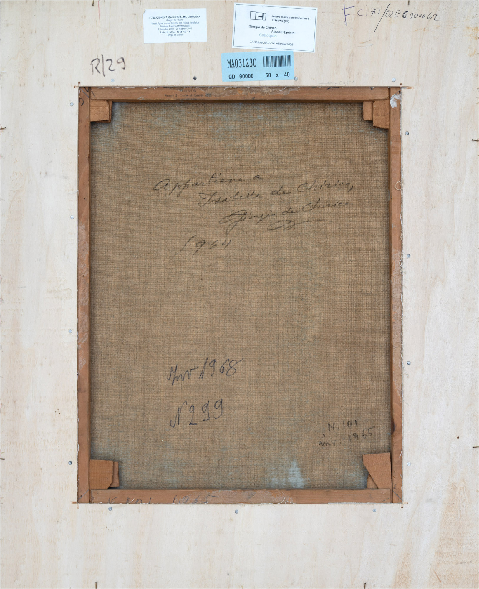 Etichetta della mostra "Giorgio de Chirico, Alberto Savinio: Colloquio", Museo d'arte Contemporanea di Lissone, 28 ottobre 2007-27 gennaio 2008 sul retro