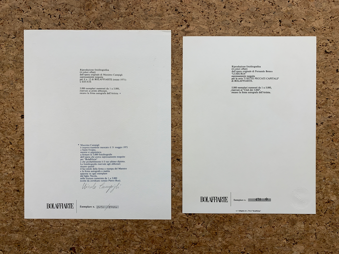 AUTORI VARI (BOTERO E CAMPIGLI) - Lotto unico composto da 2 opere