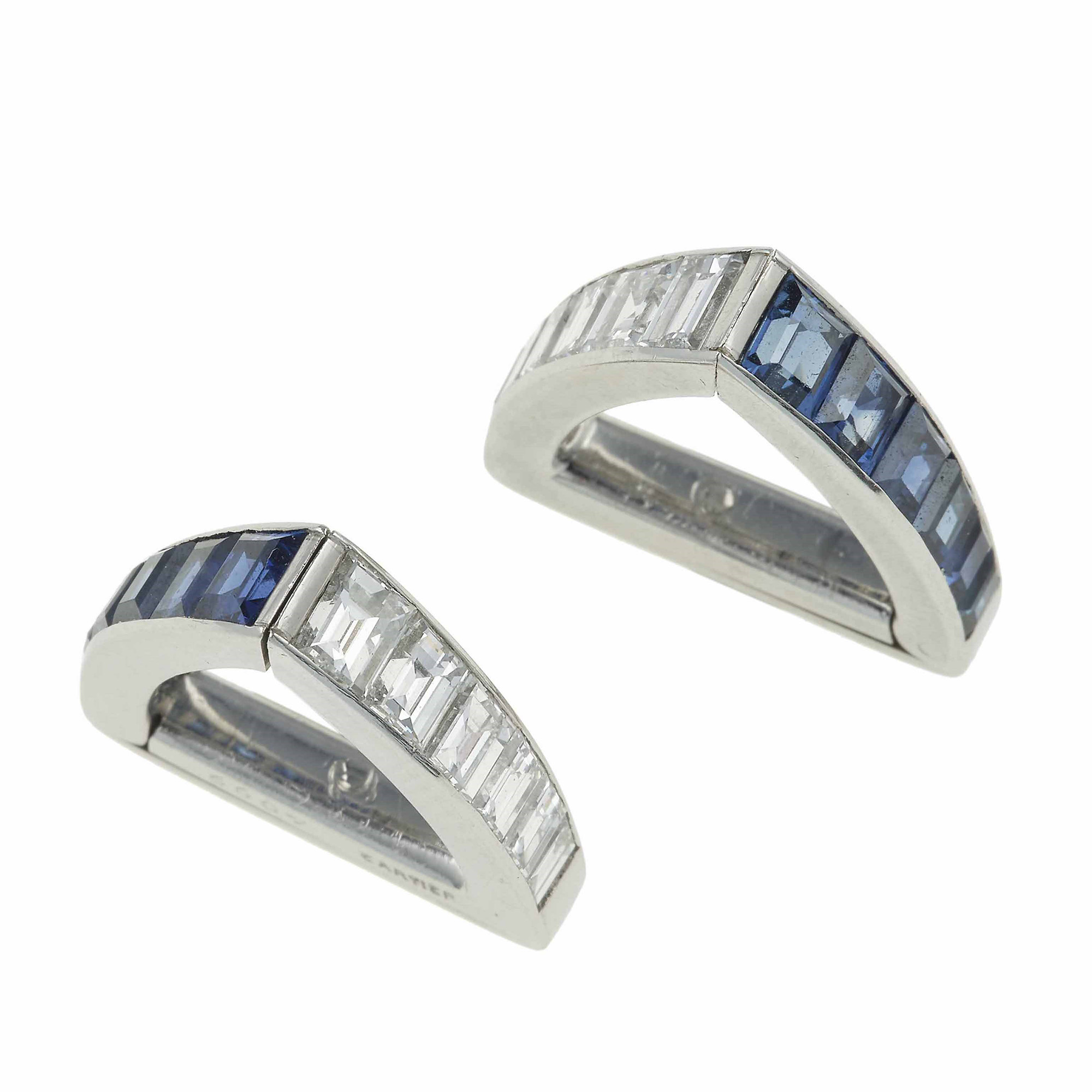 Cartier. Bottoni da polso con diamanti e zaffiri