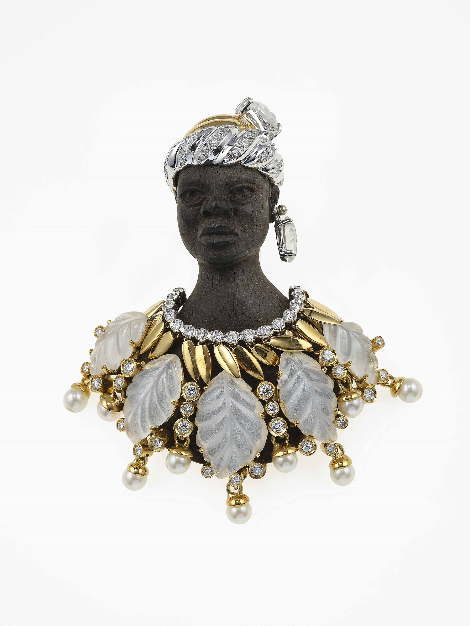 Moretto in legno inciso con quarzo, perline e piccoli diamanti