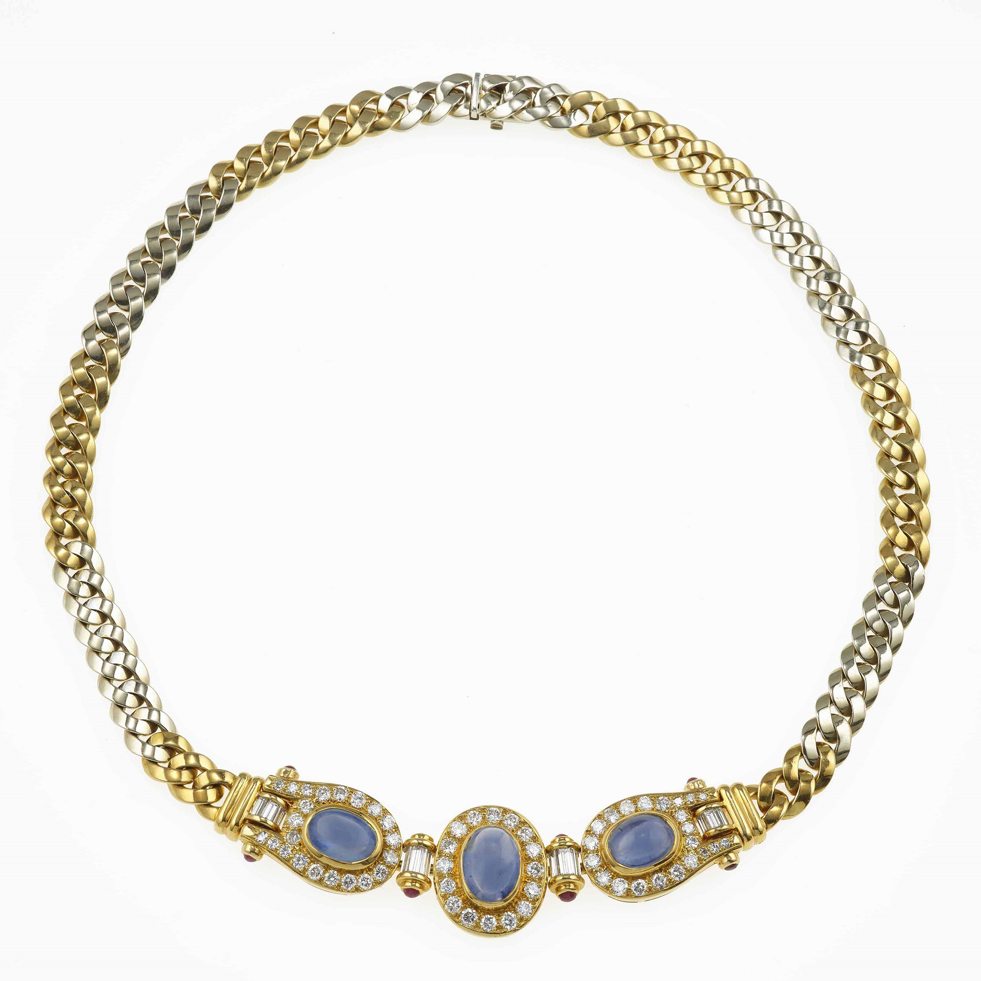 Lotto 127 | Girocollo con zaffiri Sri Lanka e diamanti