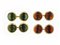 montature in oro giallo 750/1000, verdi: gr. 8,9, rossi: gr. 9,2,