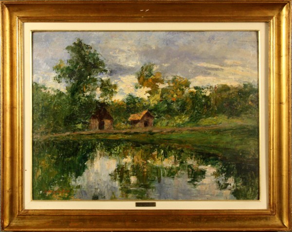 DOUGLAS SCOTT JOHN - XIX secolo. Dipinto olio su cartone raff. ''PAESAGGIO''. Firmato in basso a sinistra. In cornice Mis. Lung. cm. 69 Alt. cm. 52 ca.