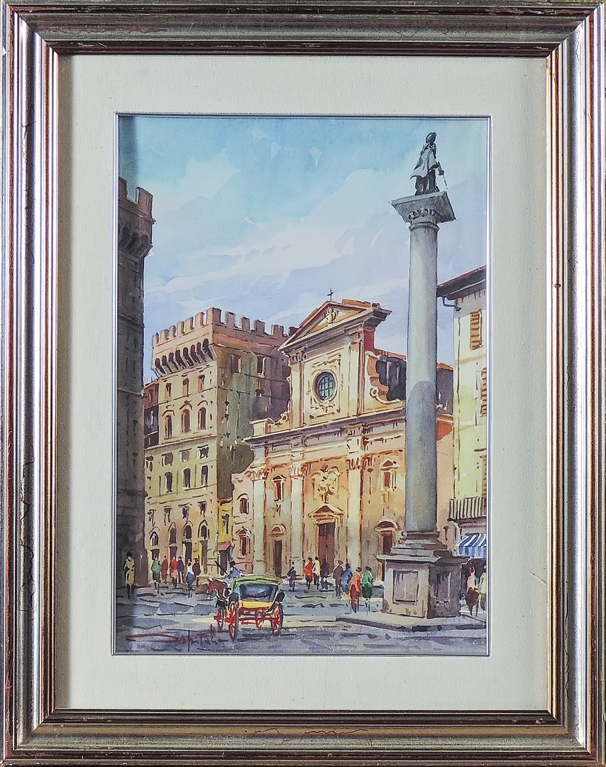 Lotto 90 | GIOVANNI OSPITALI Piazza Santa Trinita acquerello su cartoncino, firmato, in...
