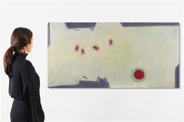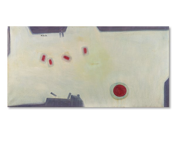Ho Kan "Senza titolo" 1964 olio e tecnica mista su tela cm 59,5x120 Firmato e da