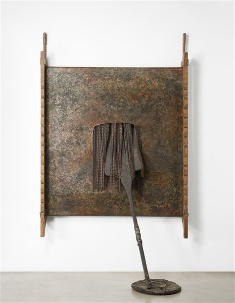 canvas, wood, galvanised copper chains, iron straws, mixed media