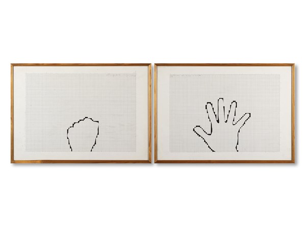 Alighiero Boetti "Mano aperta pugno chiuso" 1979 inchiostro su carta cm 35x50 ci