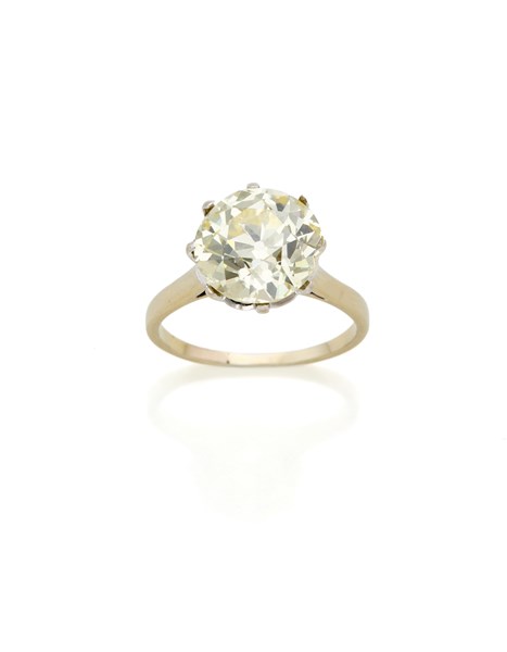 Anello in oro bianco con diamante rotondo di ct. 4,90, g 4,12 circa misura 13/5