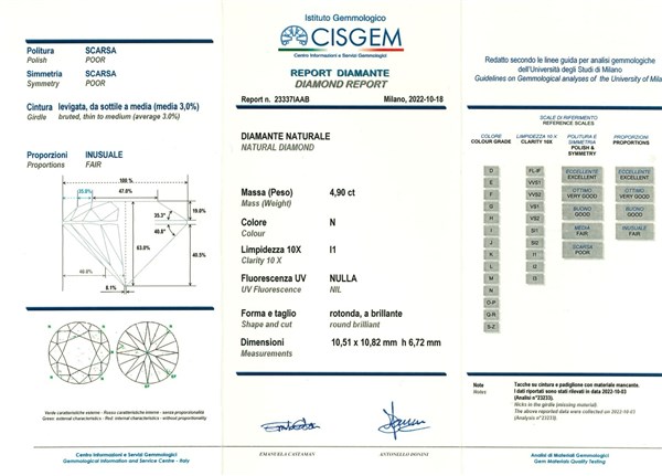 Appended diamond report CISGEM n. 23337IAAB 18/10/2022, Milano