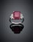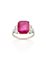 Anello in platino con rubino ottagonale di ct. 4,37 e diamanti a baguette, g 4,
