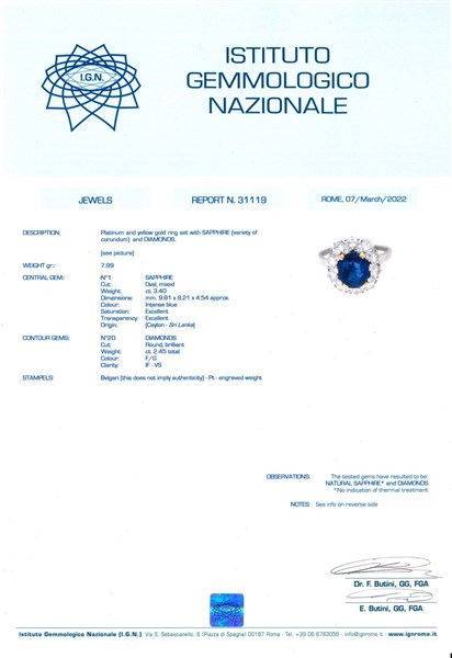 Appended gemmological report IGI n. 31119 07/03/2022, Roma
