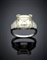Anello in oro bianco con diamante carré di ct. 6,40 circa e rifinito con diamanti a baguette, per complessivi ct. 7,40 circa, g 6,85 circa misura 15/55.