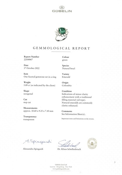 Appended gemmological report GUBELIN n. 22100067 17/10/2022, Lucerna
