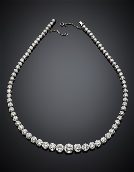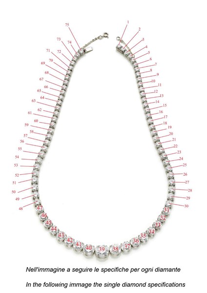Lotto 542 | Collier a scalare in oro bianco e diamanti rotondi per complessivi ct. 45,50 ci