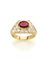 Anello in oro giallo con diamanti tapered per complessivi ct. 2,00 circa e rubino ovale di ct. 1,84 circa, g 9,42 circa misura 15,5/55,5.