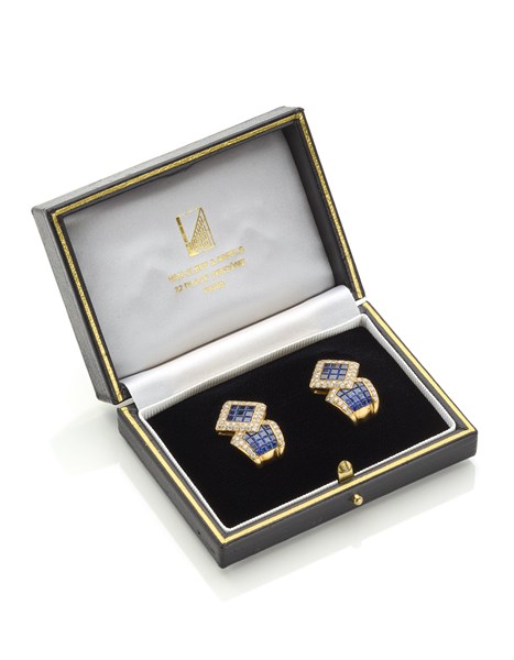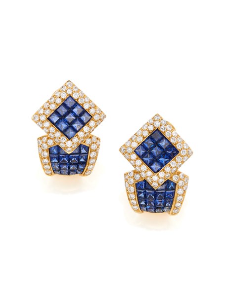 VAN CLEEF & ARPELS Orecchini in oro giallo a lobo con clip, diamanti e zaffiri,