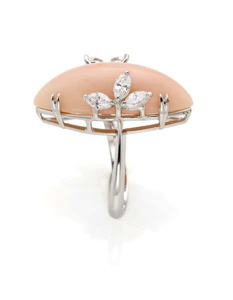 ILLARIO Anello in platino con corallo rosa "peau d'ange" a navette cabochon e d