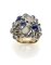Anello a cupola in oro bianco con pietra di luna e zaffiri cabochon per comples