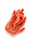 Piccola scultura in corallo arancione a guisa di mano con una ninfa, g 28,85 circa, lungh. cm 5,40 circa.