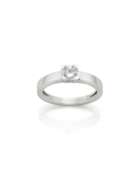 Lotto 621 | Anello in oro bianco con diamante rotondo di ct. 0,53 circa, g 4,70 circa misur