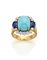 Cabochon turquoise, round diamond and oval sapphire bi-coloured gold ring, diamonds in all ct. 0.60 circa, g 12.78 circa size 19/59. Marked 274 NA.
