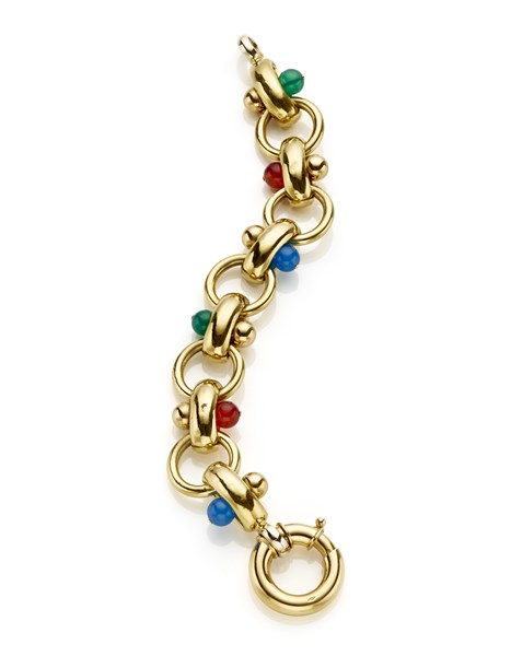 Lotto 661 | Bracciale in oro giallo con chiusura a moschettone, rifinito con boules in corn