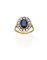Anello in oro giallo e argento con zaffiro ovale di ct. 3,00 circa e diamanti p