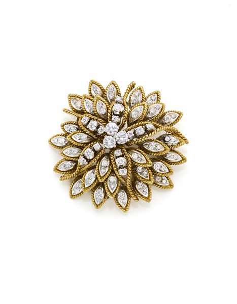 LUNATI Spilla floreale in oro giallo a fune e diamanti per complessivi ct. 1,60