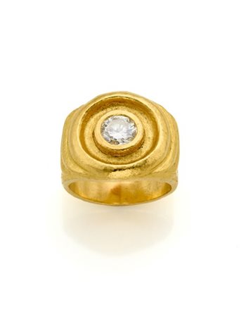 Round ct. 0.80 circa diamond yellow 24K hammered gold ring, g 12.71 circa size 13/53.