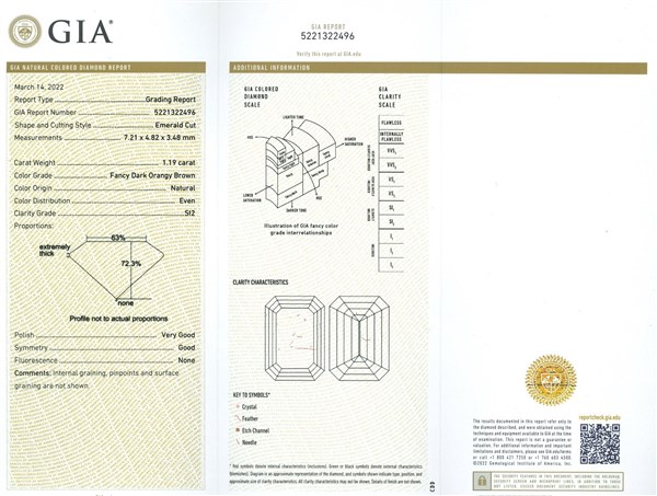 Appended diamond report GIA n. 5221322496 14/03/2022, New York
