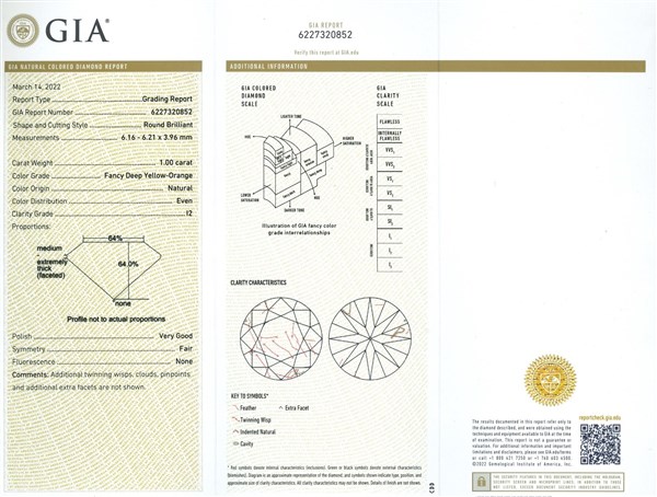 Appended diamond report GIA n. 6227320852 14/03/2022, New York
